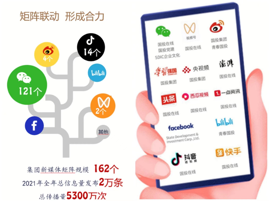 此后,公司陸續開(kāi)通的微信、微博、學(xué)習強國等16個(gè)系列新媒體賬號。從2014年至今,國投集團共開(kāi)設新媒體賬號160余個(gè),覆蓋微信、微博、學(xué)習強國、Facebook、抖音、快手、B站、央視頻等各類(lèi)新媒體平臺,通過(guò)圖文、直播、視頻、H5、動(dòng)漫、圖解等融媒體形式積極發(fā)布各種互動(dòng)式、服務(wù)式、體驗式新聞信息服務(wù),用戶(hù)數持續增長(cháng),影響力不斷擴大。2021年,國投集團162個(gè)新媒體賬號發(fā)布總量2萬(wàn)多條,閱讀總量5300萬(wàn)多。